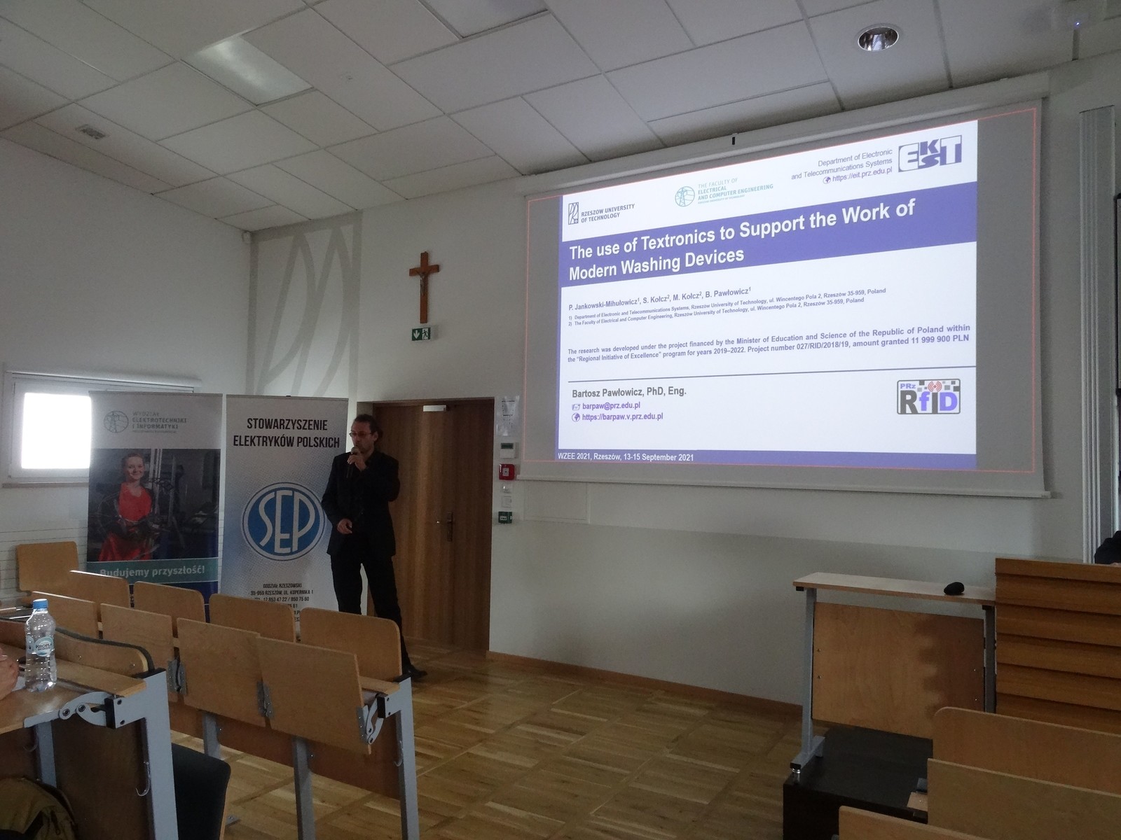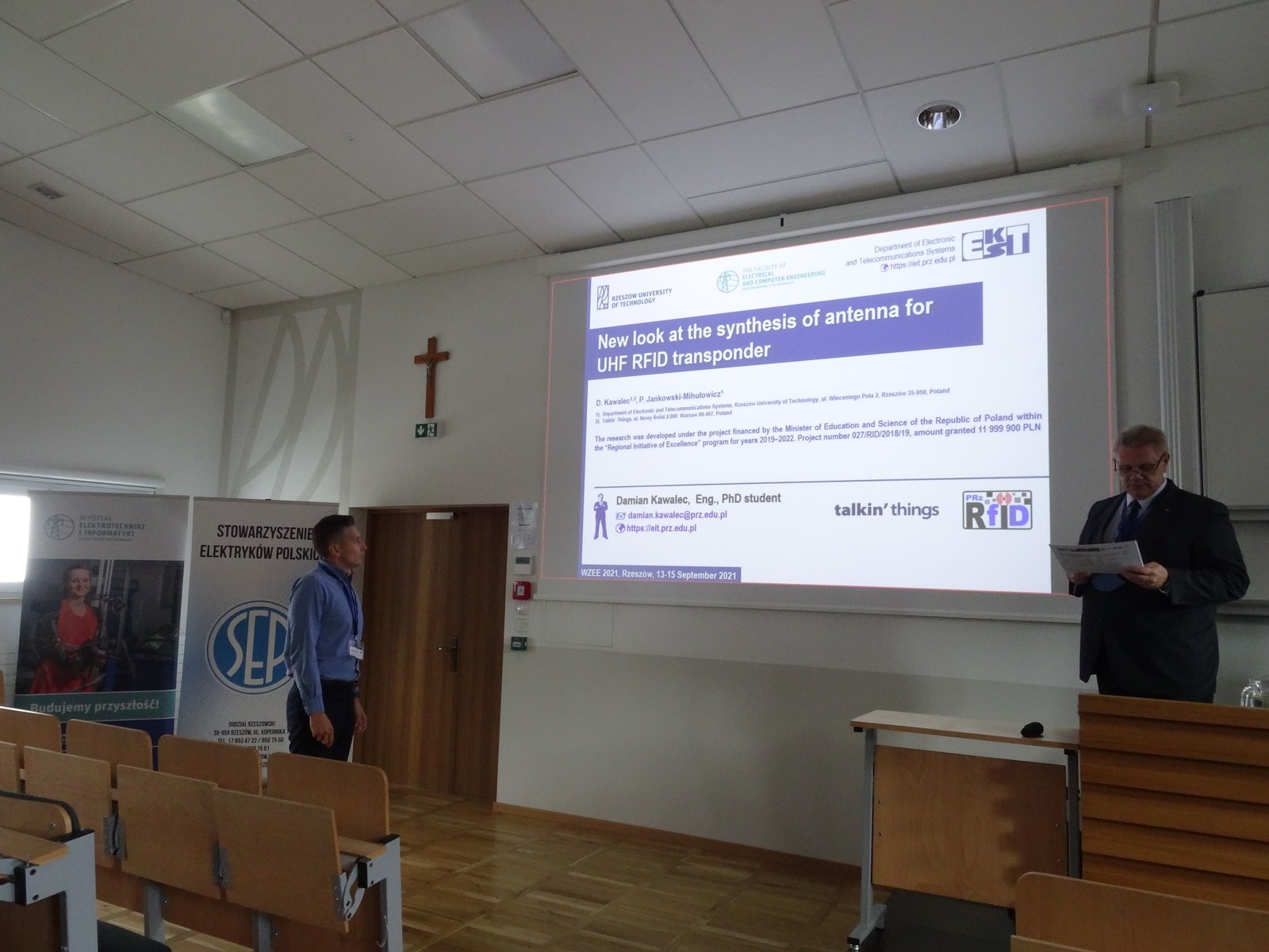 W dniach od 13 do 15 września na Politechnice Rzeszowskiej odbyła się 16 Międzynarodowa Konferencja „Wybrane zagadnienia elektrotechniki i elektroniki WZEE’2021”, podczas której pracownicy Katedry Systemów Elektronicznych i Telekomunikacyjnych zaprezentowali cząstkowe wyniki aktualnych prac badawczych realizowanych w zakresie techniki radiowej identyfikacji obiektów (RFID) oraz kompatybilności elektromagnetycznej (EMC):