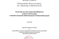 30 listopada 2017 r. dr hab. inż. Piotr Jankowski-Mihułowicz, prof. PRz otrzymał zespołową nagrodę Rektora PRz (I stopnia) za cykl publikacji oraz prace badawczo-rozwojowe na rzecz gospodarki w obszarze techniki antenowej i radiowej identyfikacji obiektów RFID.