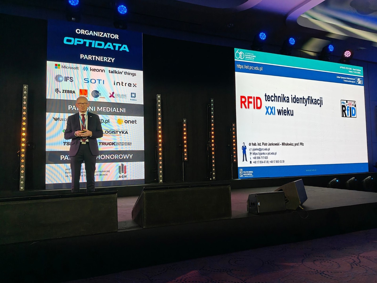 W dniach 15-16 października 2025 r. w DoubleTree by Hilton Kraków Hotel & Convention Center odbyła się konferencja OPTIDATA TECH 2025 – Smart Solutions, która była poświęcona nowoczesnym rozwiązaniom technicznym i technologicznym stosowanym w biznesie. W trakcie tego wydarzenia dr hab. inż. Piotr Jankowski-Mihułowicz, prof. uczelni zaprezentował w środowisku przedsiębiorców efekty osiągnięć XXI wieku w zakresie techniki radiowej identyfikacji obiektów. Była to okazja do pokazania, jak wiele z tych prac było realizowanych w laboratorium techniki RFID na Politechnice Rzeszowskiej. W trakcie wydarzenia odbyło się wiele prelekcji, paneli dyskusyjnych oraz spotkań biznesowych, których celem było ukierunkowanie dalszego rozwoju firm.