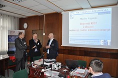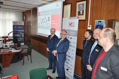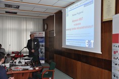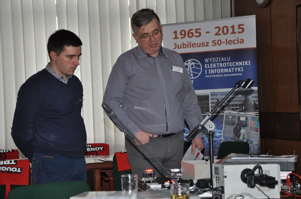 W drugiej części seminarium pracownicy Katedry Systemów Elektronicznych i Telekomunikacyjnych zaprezentowali uczestnikom aktywność poszczególnych zespołów badawczych w zakresie skoordynowanych dziedzin kompatybilności elektromagnetycznej, radiowej identyfikacji obiektów oraz mikro- i nanotechnologii elektronicznych. W pierwszej kolejności dr inż. Mariusz Węglarski dokonał charakterystyki różnych technologii wytwarzania struktur mikroelektronicznych, przedstawił praktyczne problemy związane z ich projektowaniem, a także omówił specjalistyczne wyposażenie laboratorium HYBRID. Na zakończenie seminarium uczestnicy zwiedzili wybrane laboratoria Katedry Systemów Elektronicznych i Telekomunikacyjnych. W tej części spotkania, dr inż. Wiesław Sabat i dr inż. Kazimierz Kuryło zapoznali zwiedzających z możliwościami technicznymi i badawczymi w zakresie kompatybilności elektromagnetycznej. Z kolei dr hab. inż. Piotr Jankowski-Mihułowicz zapoznał uczestników seminarium z najważniejszymi osiągnięciami badawczymi w zakresie techniki antenowej oraz radiowej identyfikacji obiektów RFID, a także przedstawił ofertę współpracy z przemysłem w przedmiotowym zakresie. W kontekście omawianych podczas seminarium zagadnień pozyskiwania energii z pola elektromagnetycznego, Piotr Jankowski-Mihułowicz zwrócił szczególną uwagę na praktyczne aspekty wyników projektu badawczego pt. „Synteza autonomicznego identyfikatora półpasywnego, dedykowanego do pracy w wielokrotnych, dynamicznych systemach RFID”, który w latach 2012-2015 był finansowany przez NCBR w ramach I PBS (nr PBS1/A3/3/2012). Ponadto, pracownicy KSEiT zaprezentowali i omówili aparaturę zakupioną w wyniku realizacji projektów: a) „Rozbudowa infrastruktury naukowo-badawczej Politechniki Rzeszowskiej”, nr POPW.01.03.00-18-012/09, współfinansowanego ze środków UE w ramach PO RPW 2007-2013, Priorytet I, Nowoczesna Gospodarka, Działanie 1.3, Wspieranie Innowacji; b) "Budowa, rozbudowa i modernizacja bazy naukowo-badawczej Politechniki Rzeszowskiej", nr UDA-RPPK.01.03.00-18-003/10-00, współfinansowanego ze środków UE w ramach RPO WP 2007-2013.