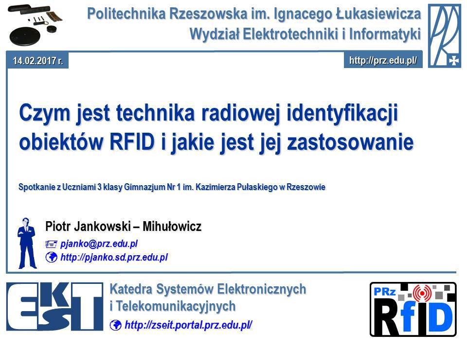 W tym zakresie Piotr Jankowski-Mihułowicz wprowadził uczestników w zagadnienia techniki RFID (wykład pt. "Czym jest technika radiowej identyfikacji obiektów RFID i jakie jest jej zastosowanie"). Dodatkowo, w trakcie wizyty w specjalistycznym laboratorium RFID uczniowie mieli okazję zapoznać się z wybranymi efektami prac badawczo-rozwojowych KSEiT (NCBR PBS1/A3/3/2012, DS i innych umów z partnerami przemysłowymi), które zostały uzyskane m.in. przy wykorzystaniu aparatury zakupionej z POPW.01.03.00-18-012/09, UDA-RPPK.01.03.00-18-003/10-00.