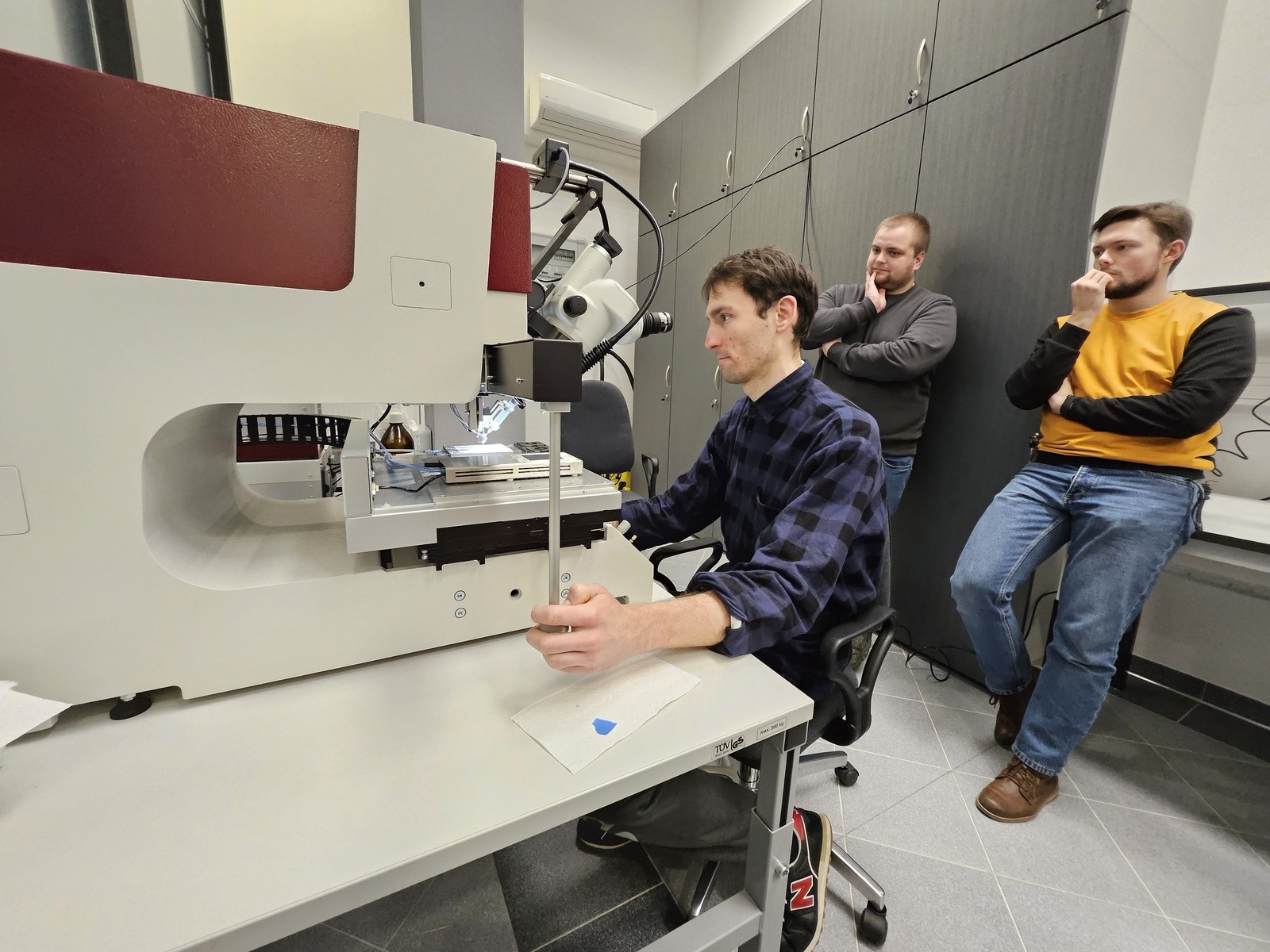 W dniach od 11 do 13 grudnia 2024 r. odbyła się dostawa, instalacja i kalibracja zaawansowanego systemu typu pick-and-place (T-5100 PC controlled Manual Die Bonder) szwajcarskiej firmy Dr. Tresky AG, który stanowi nową aparaturę badawczą specjalistycznego laboratorium techniki radiowej identyfikacji obiektów (RFID) w Zakładzie Systemów Elektronicznych i Telekomunikacyjnych na Wydziale Elektrotechniki i Informatyki Politechniki Rzeszowskiej. Dostawa została zrealizowana w ramach zadania pn. „Zakup systemu do montażu struktur półprzewodnikowych” z dotacji celowej Ministra Nauki i Szkolnictwa Wyższego na realizację inwestycji związanych z kształceniem oraz działalnością naukową.