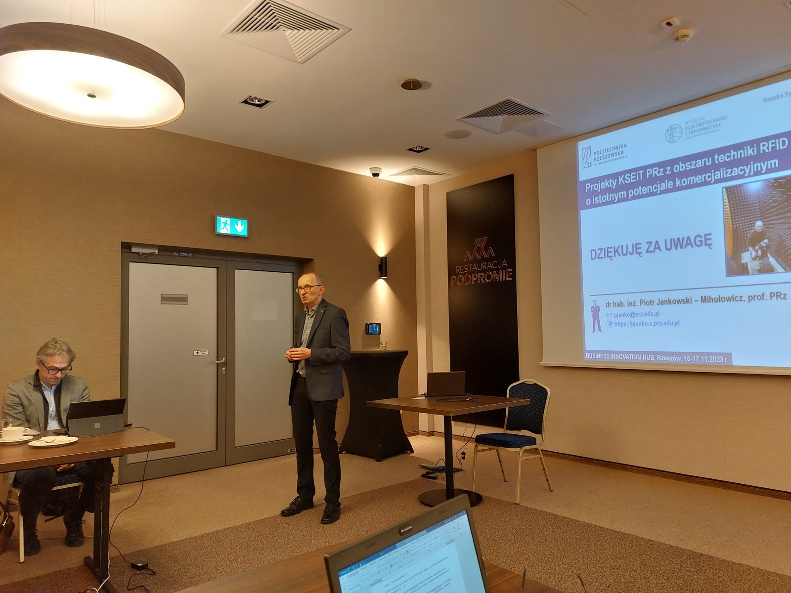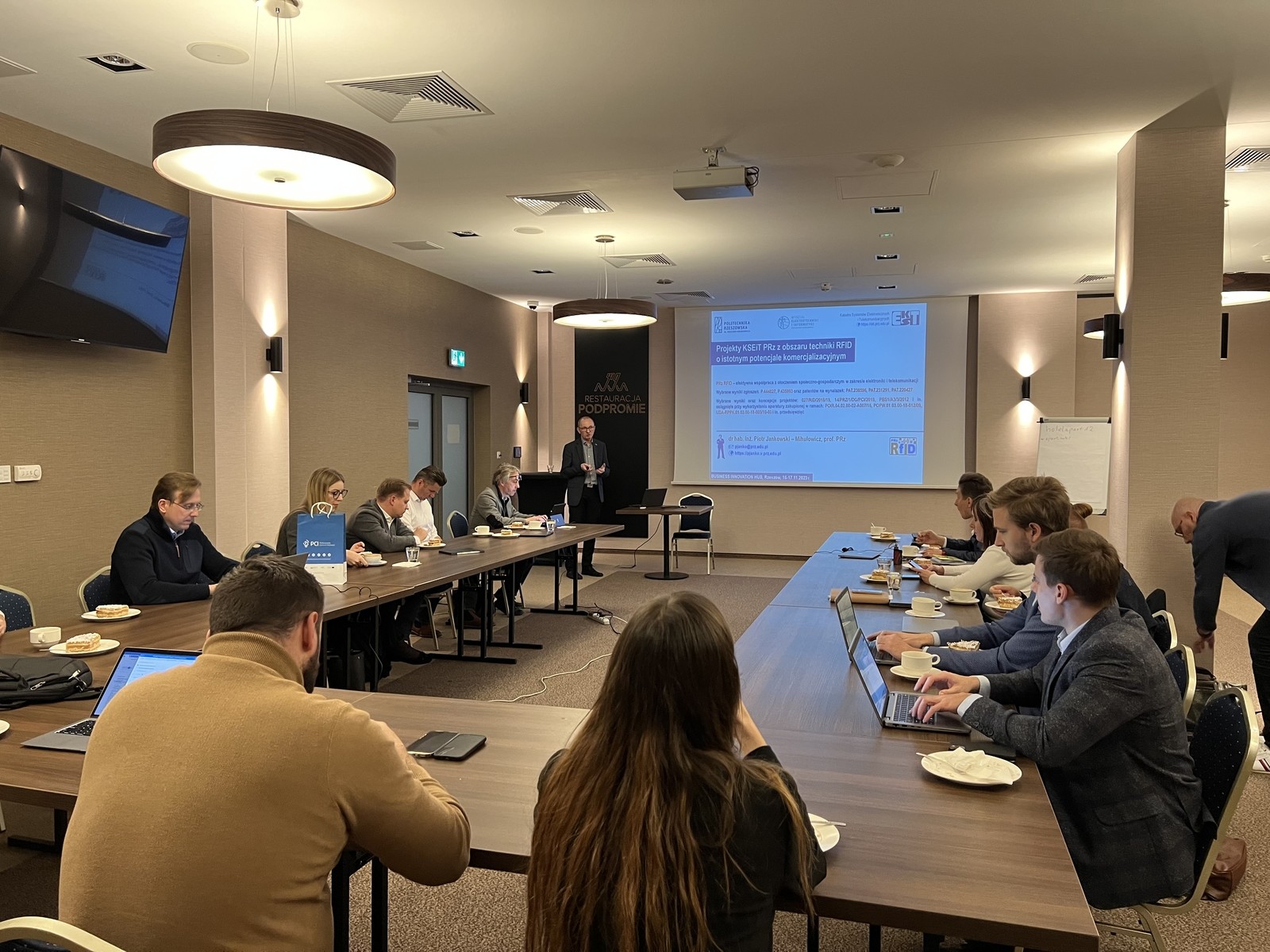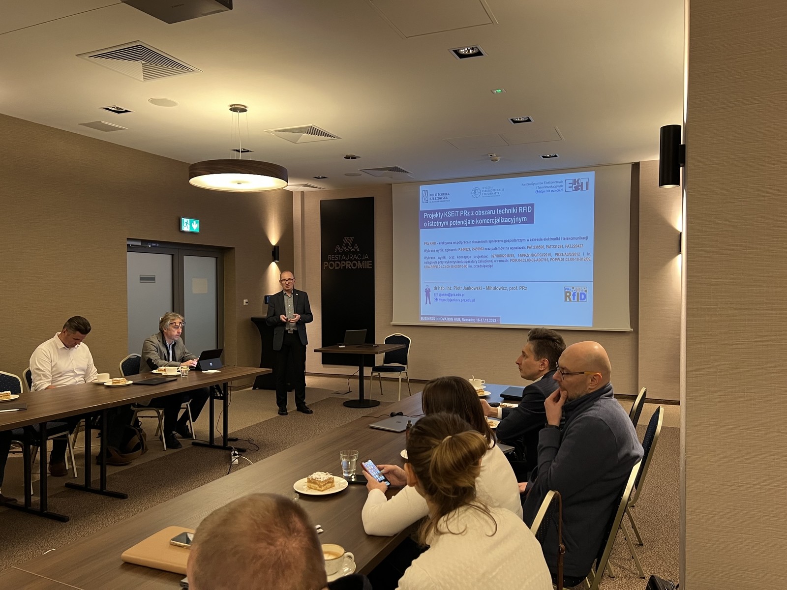 - dr hab inż. Piotr Jankowski-Mihułowcz, prof. PRz zaprezentował projekty Katedry Systemów Elektronicznych i Telekomunikacyjnych PRz z obszaru techniki RFID o istotnym potencjale komercjalizacyjnym, a także zakres współpracy z partnerami przemysłowymi;