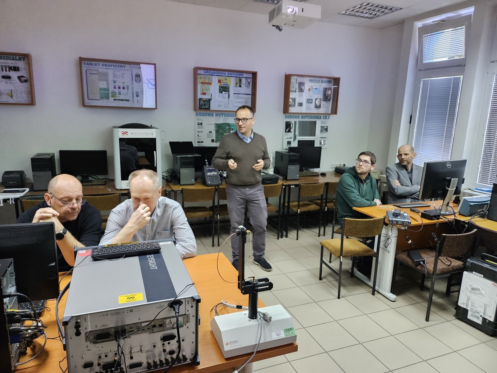 W dniu 18.04.2024 r. w Zakładzie Systemów Elektronicznych i Telekomunikacyjnych na Wydziale Elektrotechniki i Informatyki Politechniki Rzeszowskiej odbyły się warsztaty poświęcone praktyce pomiarowej RF w zakresie wykorzystania wektorowych analizatorów obwodów (VNA – ang. Vector Network Analyzer). Spotkanie zostało poprowadzone przez Panów Tomasza Brama i Jacka Teodorczyka, przedstawicieli AM Technologies Sp. z o.o. Sp.k., z wykorzystaniem zaawansowanej aparatury kontrolno-pomiarowej Keysight Technologies. W warsztatach uczestniczyli pracownicy badawczo-dydaktyczni jednostek Wydziału: