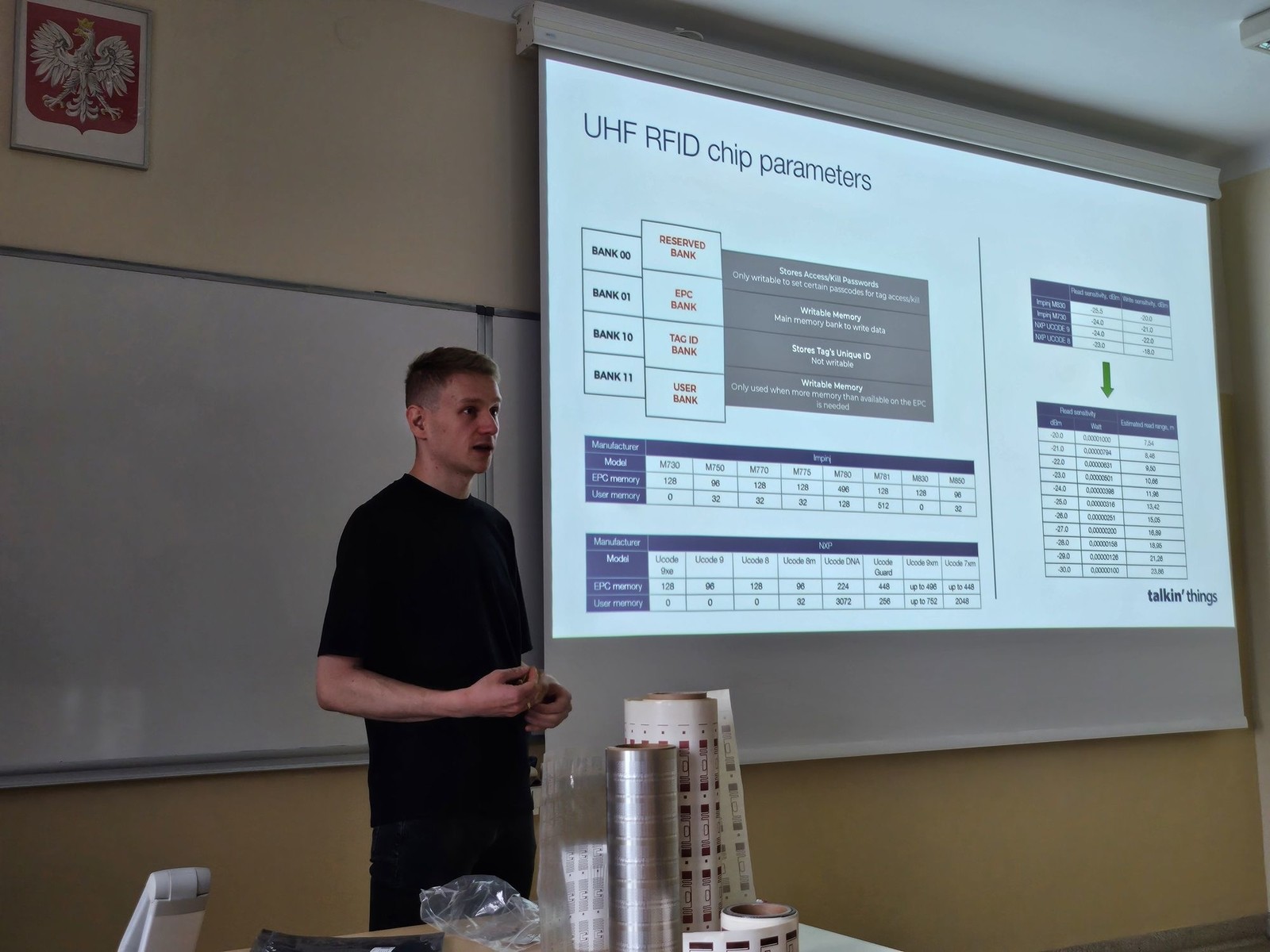 W dniu 3 czerwca 2025 roku studenci ostatniego semestru studiów II stopnia na kierunku elektronika i telekomunikacja, w ramach kończących się zajęć z modułu pn. technika radiowej identyfikacji obiektów, mieli okazję do spotkania się z przedstawicielami Talkin Things SA, które zostało zorganizowane z inicjatywy dra hab. inż. Piotra Jankowskiego-Mihułowicza, prof. PRz w ramach Politechnicznej Sieci VIA CARPATIA. W trakcie spotkania odbył się wykład, podczas którego mgr inż. Wojciech Lichoń (R&D Director) oraz mgr inż. Mateusz Chamera (Lead of RFID Tag Development) wpierw zaprezentowali studentom Wydziału Elektrotechniki i Informatyki swoje sylwetki zawodowe, a następnie przedstawili projektowo-produkcyjny profil działalności firmy w zakresie techniki RFID. Podczas prezentacji omawiane były konkretne przykłady projektowania, prototypowania i produkcji w Talkin Things identyfikatorów RFID, które znajdują powszechne zastosowania w zautomatyzowanych procesach takich firm, jak np.: Decathlon, Inditex, Boehringer Ingelheim, Sato, Nestle, Calzedonia, L'Oréal, Sanofi, Mango, Goodwill, Mars, Coca-Cola, GSK, P&G, TAKARA-TOMY Company. Prezentacja była wzbogacona pokazami półfabrykatów projektowanych anten, wafli krzemowych z chipami wykorzystywanymi w procesie produkcji, a także finalnych rozwiązań konstrukcyjnych identyfikatorów RFID. Było to doskonałe uzupełnienie wiedzy, jaką studenci zdobywali podczas zajęć dydaktycznych realizowanych w przedmiotowym zakresie.