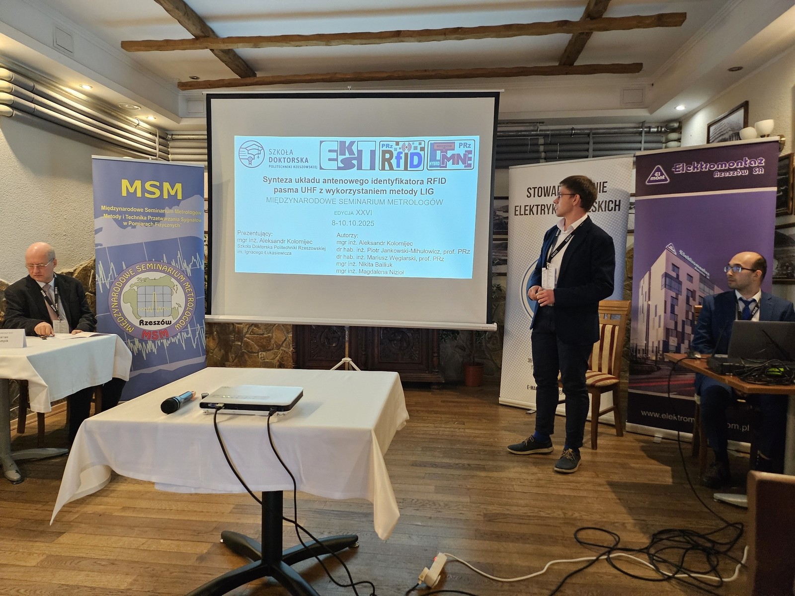 W dniach 8-10 października w Rzeszowie i Polańczyku odbyło się XXVI Międzynarodowe Seminarium Metrologów pn. „Metody i Technika Przetwarzania Sygnałów w Pomiarach Fizycznych”, podczas którego wybrani pracownicy zespołu z Zakładu Systemów Elektronicznych i Telekomunikacyjnych zaprezentowali cząstkowe wyniki aktualnych prac badawczych realizowanych w zakresie techniki radiowej identyfikacji obiektów (RFID):