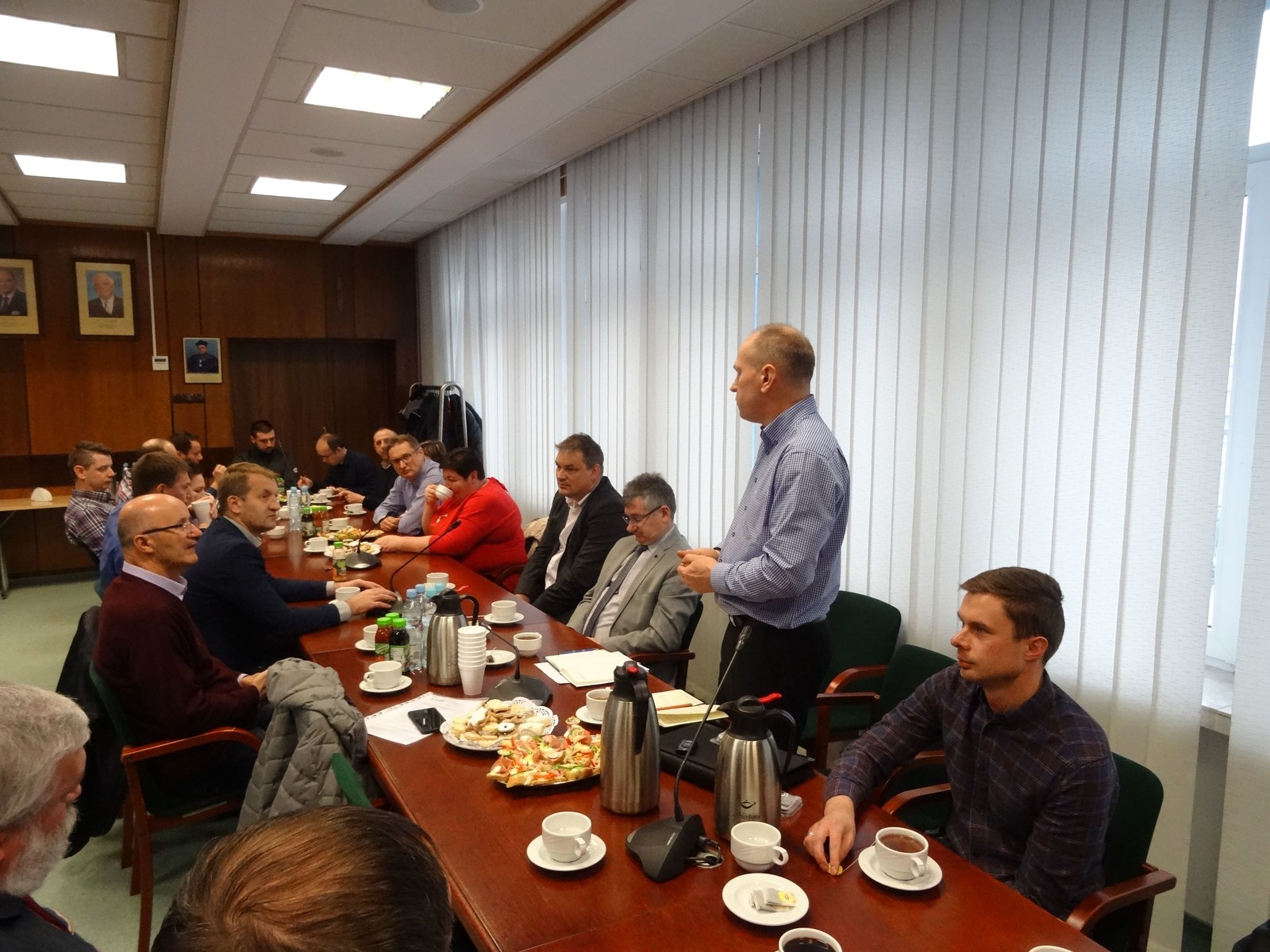 Po dokonaniu inspekcji obu kondygnacji nowej części budynku AL, a także jego wewnętrznej i zewnętrznej infrastruktury, członkowie Komisji udali się na posiedzenie do sali A101 WEiI. W trakcie obrad Przewodniczący Komisji mgr inż. Marek Grabarz szczegółowo omówił przeprowadzone czynności odbiorowe, po których nastąpiła dyskusja, a w jej efekcie podpisanie końcowego protokołu. W trakcie tego posiedzenia wybrani uczestnicy Komisji mieli okazję do podsumowania zrealizowanych prac. W tym kontekście, w pierwszej kolejności Prorektor ds. kształcenia dr hab. inż. Grzegorz Masłowski, prof. PRz omówił znaczenie zrealizowanej rozbudowy dla rozwoju Politechniki Rzeszowskiej. Z kolei Kanclerz PRz mgr inż. Andrzej Sowa dokonał wysokiej oceny przeprowadzonych prac w kontekście ich sprawności i jakości, co w dobie aktualnego stanu branży budowlanej było poważnym wyzwaniem na etapie planowania, uruchomienia, realizacji i zakończenia tej inwestycji. W końcowej części spotkania dr inż. Wiesław Sabat dokonał ogólnej charakterystyki działań PRz w ramach przedsięwzięcia Polskiej Mapy Drogowej Infrastruktury Badawczej ukierunkowanej na zagadnienia EMC w branży lotniczej, a także podziękował Wykonawcy (Firmie MS BUD Maciej Tadla z siedzibą w Boguchwale) za bardzo dobrą współpracę na każdym etapie realizacji przedsięwzięcia. Na zakończenie posiedzenia Kierownik KSEiT dr hab. inż. Piotr Jankowski-Mihułowicz, prof. PRz omówił znaczenie przedmiotowej inwestycji dla rozwoju dyscyplin naukowych WEiI (automatyka, elektronika i elektrotechnika oraz informatyka techniczna i telekomunikacja), w ramach których po 2020 r. będzie dokonywana ewaluacja zgodnie z nowymi uwarunkowaniami Ustawy 2.0. Ponadto Kierownik KSEiT podziękował wszystkim osobom za zaangażowanie, które doprowadziło do pozytywnego zakończenia pierwszego etapu prac w ramach projektu EMC-LabNet. Wyraził on także przekonanie, że kolejne etapy będą realizowane równie sprawnie jak ten, który właśnie dobiega końca.